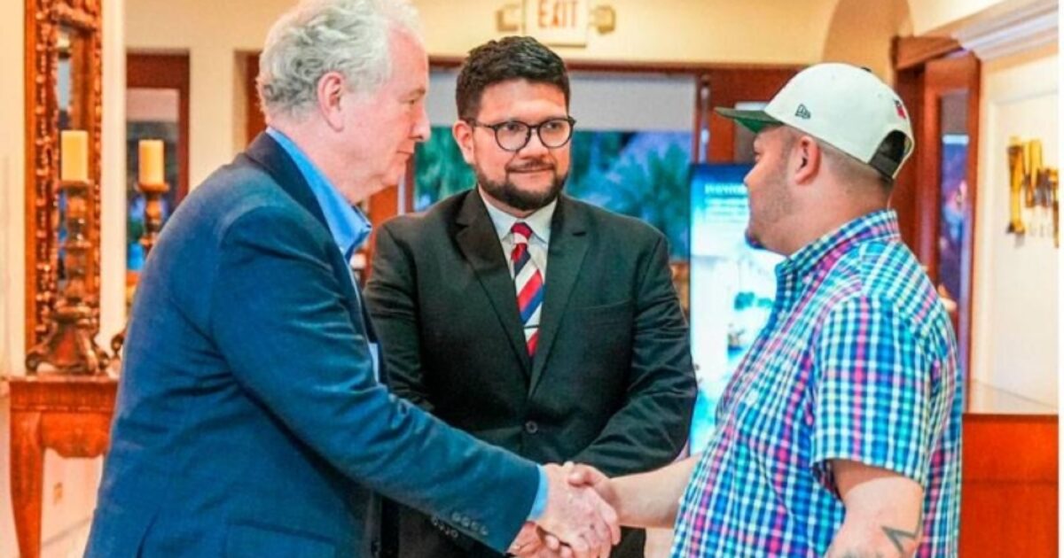 Senator Chris Van Hollen during his meeting with Salvadoran national Kilmar Ábrego. / Sourced from Nayib Bukele’s X account