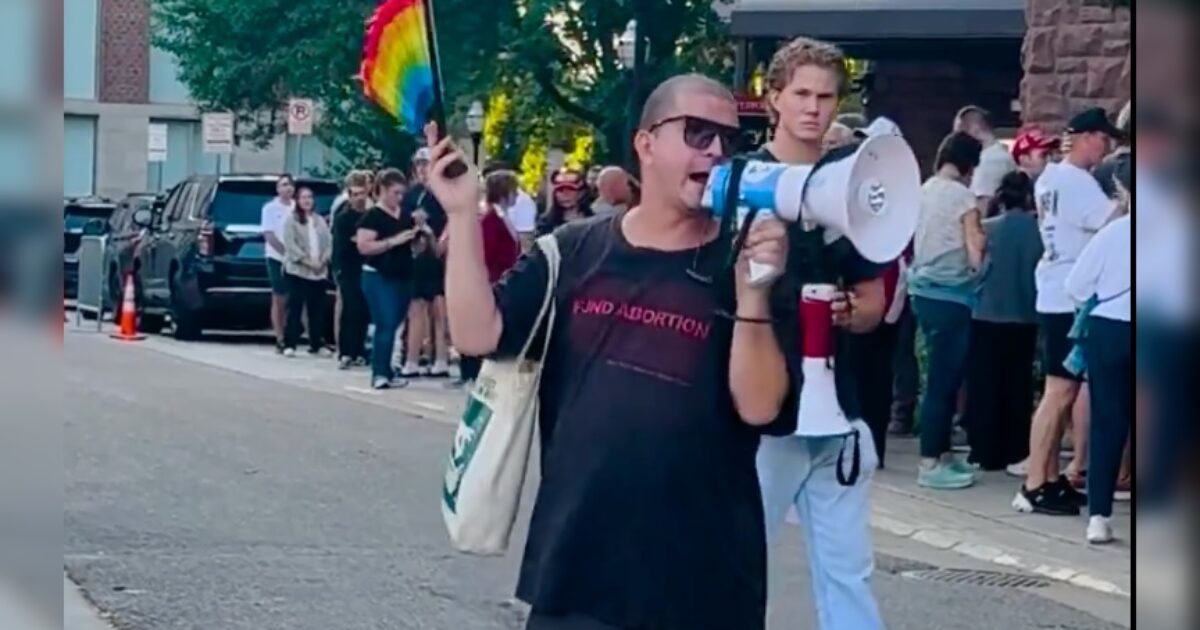 Screenshot of protester outside of TPUSA Event via TPUSA Frontlines X Account