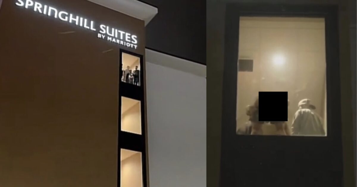 Anti-ICE protesters got an eyeful on Monday night while protesting outside the SpringHill Suites in Maple Grove, Minnesota, where ICE agents were staying, when a man flashed them from inside the hotel.