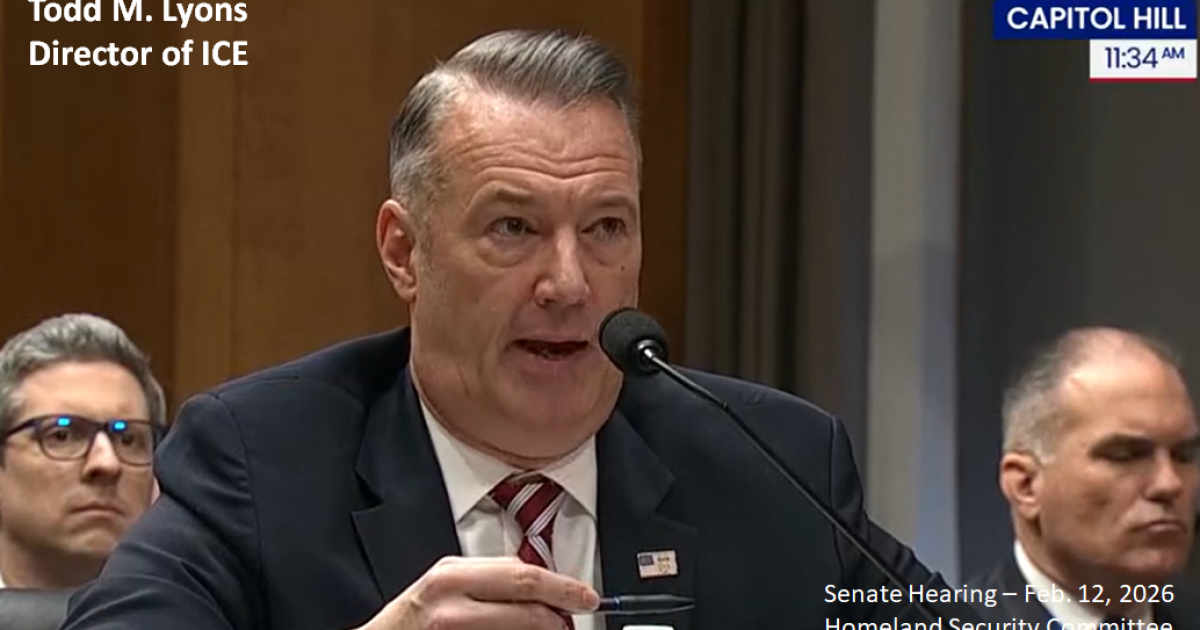 Todd M. Lyons is the senior official performing the duties of the Director of U.S. Immigration and Customs Enforcement (ICE). His testimony about the threats to his family and other agents is stunning.
