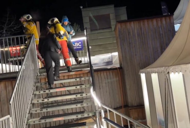 People were evacuated from the main venue at the World Economic Forum after a fire broke ...