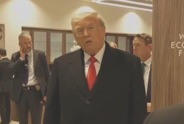 President Trump speaks to reporters at the World Economic Forum following Greenland meeting with NATO Secretary ...
