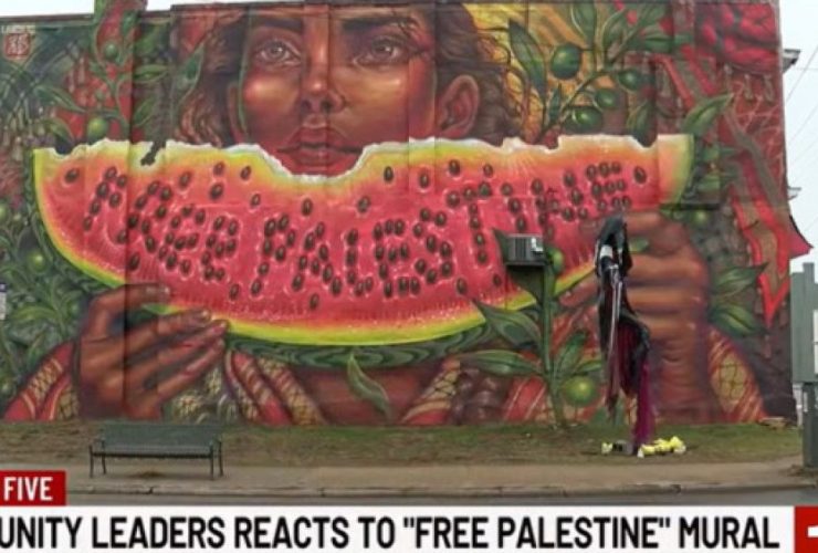 Screencap of YouTube video. Pro-Palestinian activists in Richmond, Virginia have painted a watermelon mural on a ...