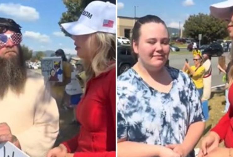 Conservative influencer Caroline Joyous stumps leftists at a “No Kings” rally on Saturday. Credit: carolinejoyous TikTok ...