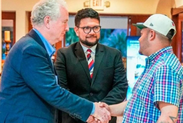 Senator Chris Van Hollen during his meeting with Salvadoran national Kilmar Ábrego. / Sourced from Nayib ...