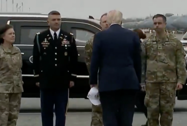 President Trump arrives at Dover Air Base Saturday afternnon for the dignified transfer of 6 US ...