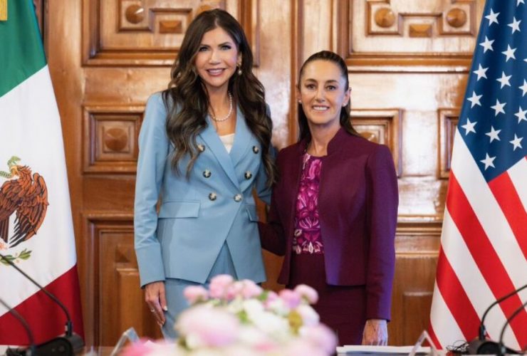 The Secretary of Homeland Security Kristi Noem arrived at the National Palace to meet with The ...