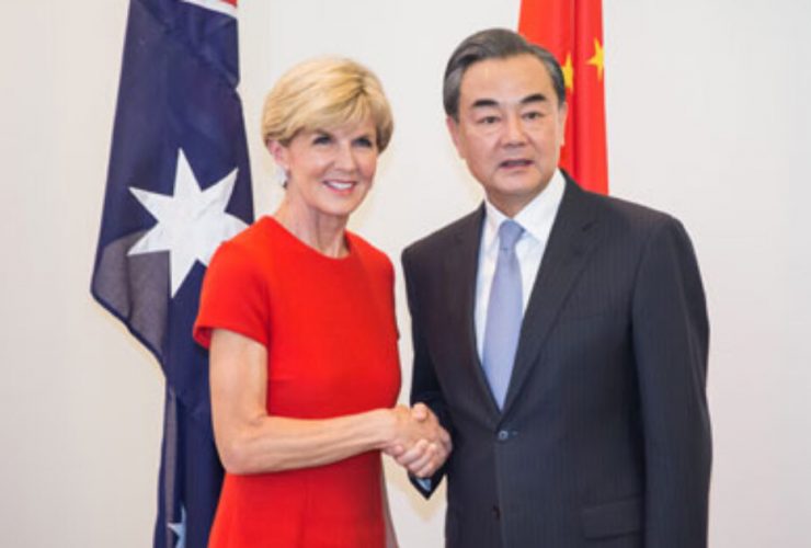 Julie Bishop, former Australian Foreign Minister and current United Nations Special Envoy to Myanmar, and Wang ...