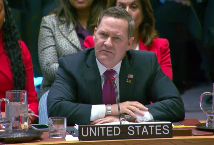 Mike Waltz delivers remarks during an emergency meeting of the UN Security Council following U.S. strikes ...