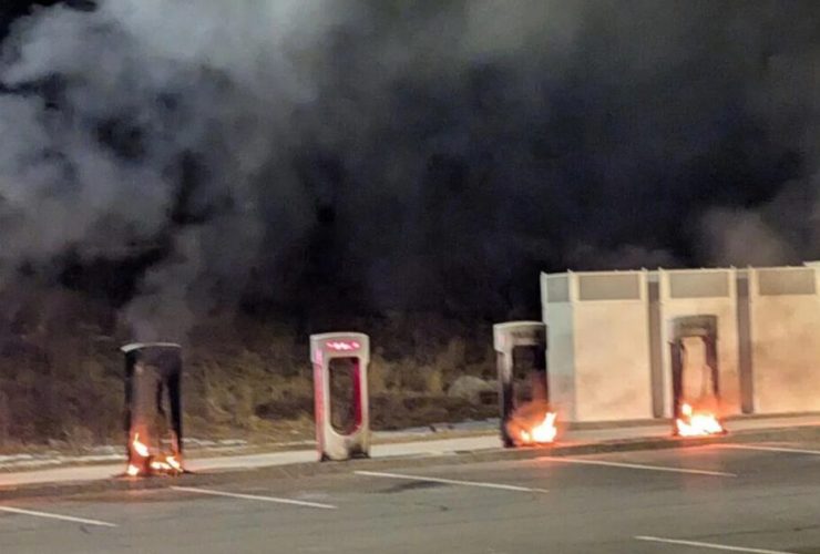 Credit: Littleton Fire Department Arsonists in Massachusetts set fire to Tesla charging stations on Monday morning ...