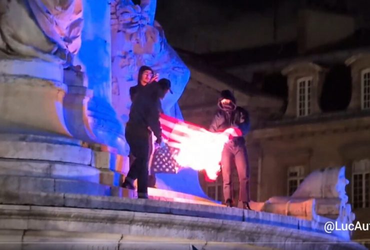 The French far left burns the U.S. flag in protest of the arrest of Venezuela’s socialist ...