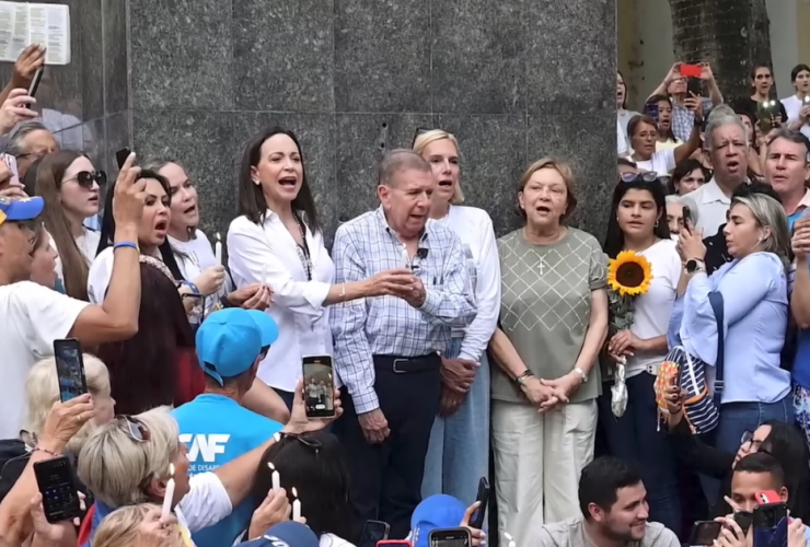 Venezuelan opposition leaders María Corina Machado and Edmundo González during a protest against dictator Nicolás Maduro ...