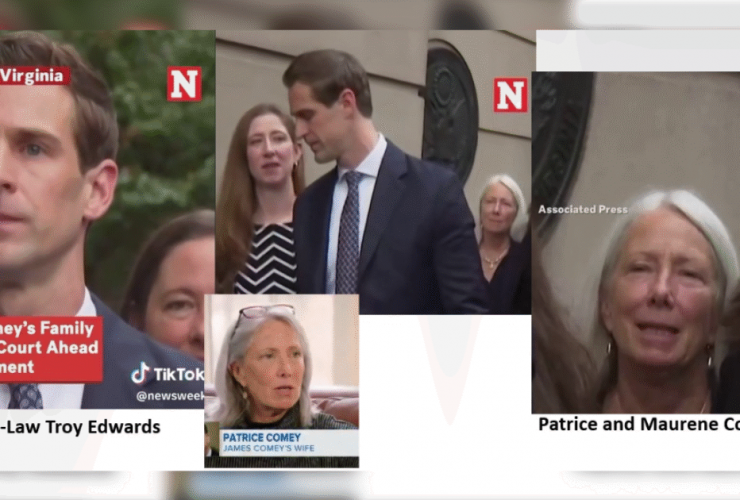 Jim Comey’s family lines up outside the Alexandria court to see him arraigned. Jim Comey’s family ...