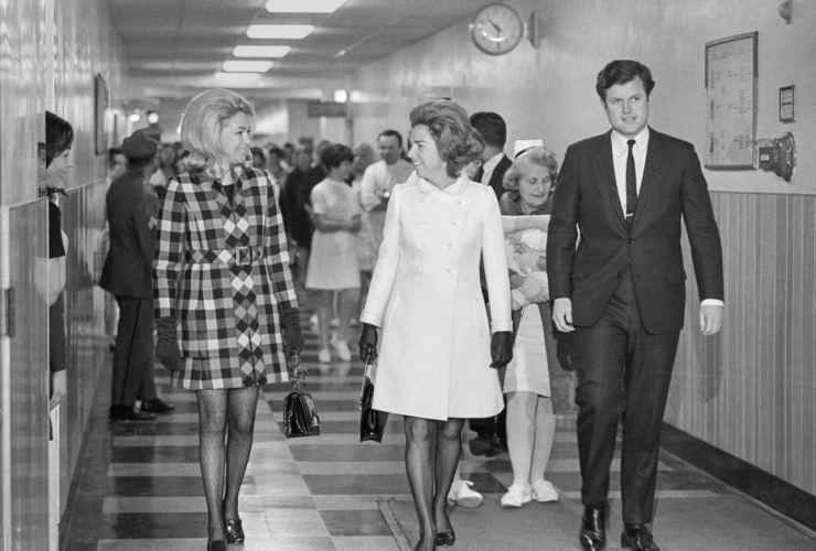 Joan Kennedy (L) with sister-in -law Ethel Kennedy (M) and ex-husband Ted (R)/ Image: Creative Commons ...