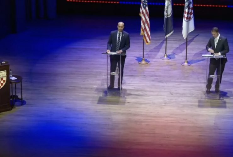 Virginia Attorney General debate at the University of Richmond — Democrat Jay Jones (left) and Republican ...
