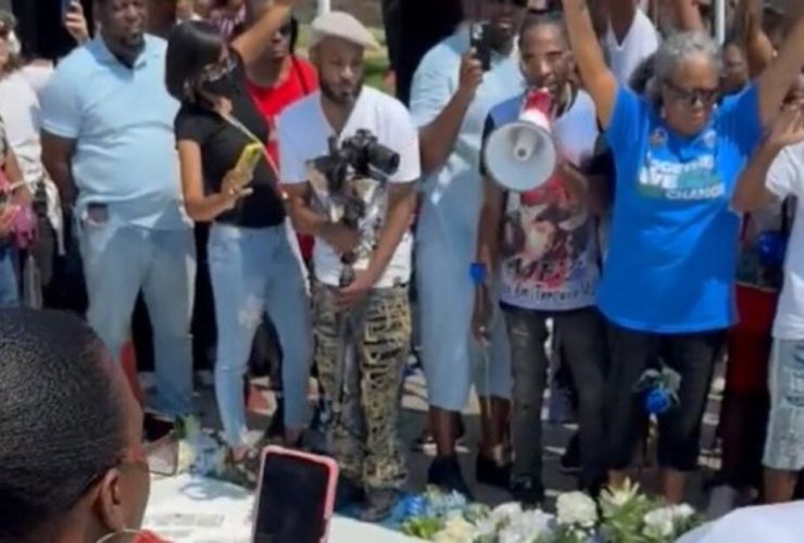 Protesters gathered in Ferguson, Missouri on Friday to commemorate Mike Brown ten years after he was ...