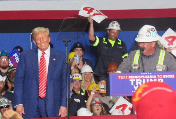 President Trump with steel workers in October 2024. Trump has always been the favorite for working ...