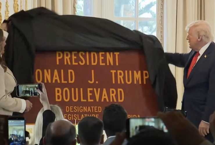 President Trump unveils the President Donald J. Trump Boulevard sign at Southern Boulevard Dedication Ceremony President ...