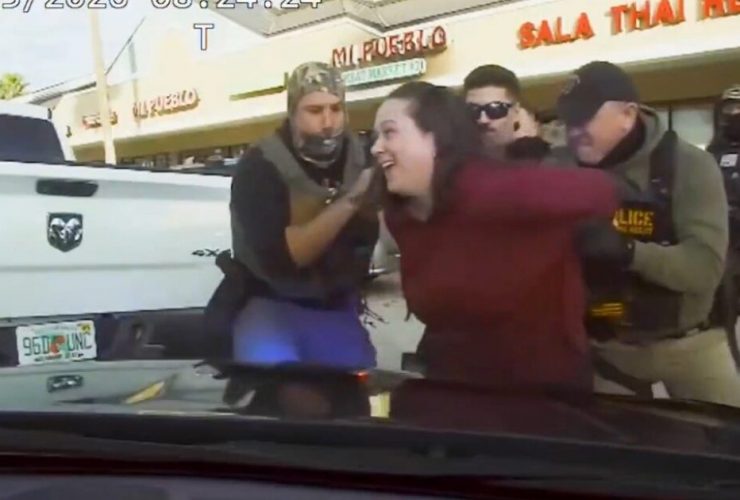 A Florida woman was promptly manhandled after she punched a trooper in the face during an ...