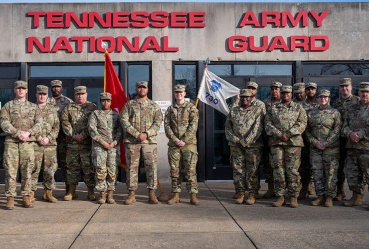 The command and leadership team from the 730th Composite Supply Company in Memphis pose for a ...