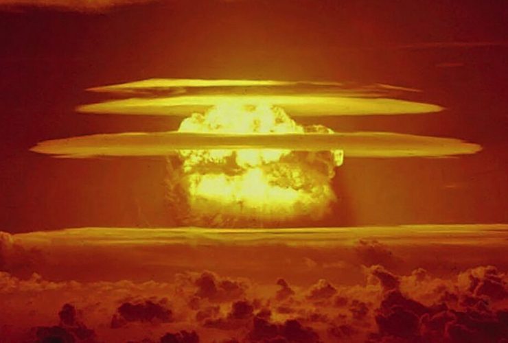 The mushroom cloud from the Castle Bravo thermonuclear weapon test in 1954, the largest nuclear weapons ...