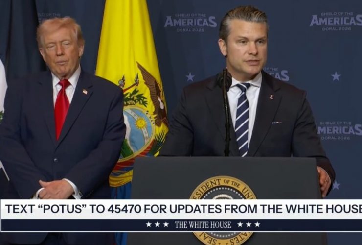 Secretary of War Pete Hegseth and President Trump announce the Shield of the Americas, a new ...